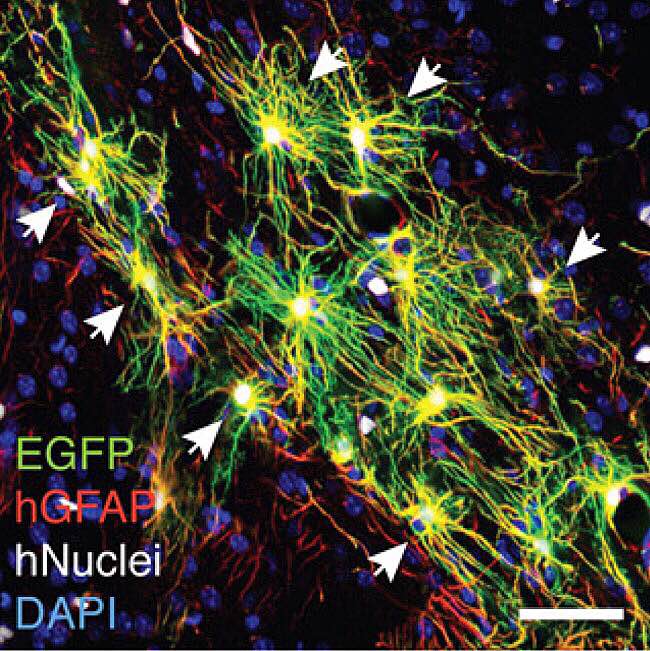 Astrócitos tem esse nome, porque tem formato de estrelas. (ASTRO=estrela e CITOS=células). Eles são as células mais abundantes do encéfalo (65%) e estão intimamente associados com a sinapse que é a comunicação entre neurônios. Astrócitos regulam a transmissão de impulsos elétricos no cérebro. Por muito tempo pensou-se que eles só tinham papel estrutural no cérebro sustentando neurônios e vasos. Mas, nos últimos 20 anos, excitantes descobertas mostraram que os astrócitos são fundamentais na neurofisiologia. Sabemos agora que os astrócitos pode propagar ondas de cálcio e , semelhante a neurônios, podem liberar neurotransmissores. Há dados que sugerem comunicação entre astrócitos e neurônios por liberação de glutamato, um neurotransmissor excitatório. Em 2013, uma pesquisa publicada na revista Cell mostrou que o transplante de astrócitos humanos para camundongos melhora sua aprendizagem, memória e neuroplasticidade, sugerindo que a função dos astrócitos foi aumentada pela evolução. Estas novas descobertas tornaram os astrócitos alvos de pesquisa tão importantes quanto os neurônios.